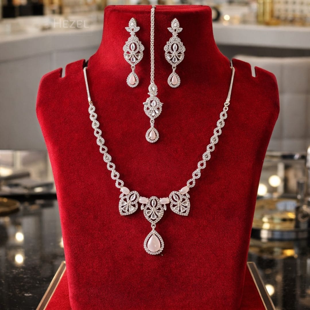 Crafted from premium silver-polish alloy, the necklace is lightweight, comfortable, and durable. Matching pearl drop earrings complete the set, creating a harmonious and sophisticated look.
